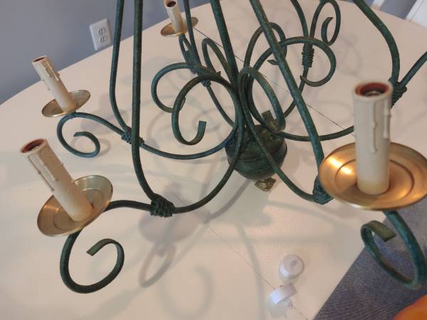 FREE FREE FREE! Vintage 6 Light Candle WROUGHT IRON "VERDIGRIS" CHANDELIER w/Gold Accents + 3' Chain ✅Perfect for any room that will compliment your decor! ✅Includes New 3' 11 Gauge Fixture Chain...