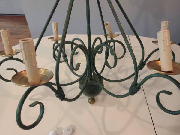 🔥Vintage 6 Light Candle WROUGHT IRON "VERDIGRIS" CHANDELIER -...