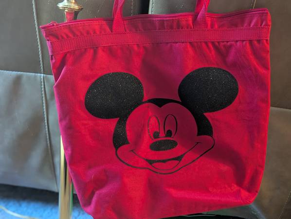 Tote Bag with Mickey Mouse. Has zipper closure. Excellent condition. Approx 9 l/2" long.