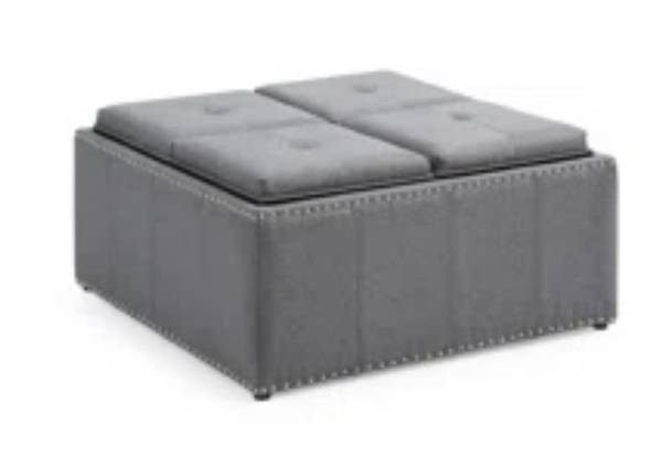 Moving or would be keeping! **Everything in GREAT condition**. Priced to sell - Grey Tufted Storage Ottoman / Coffee Table - $100 4 square opens for blanket or toy storage 16 inches tall x 31.5...