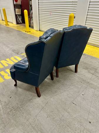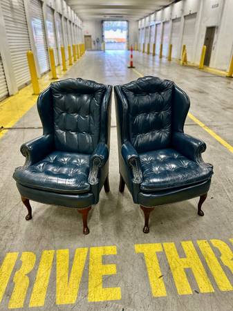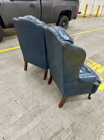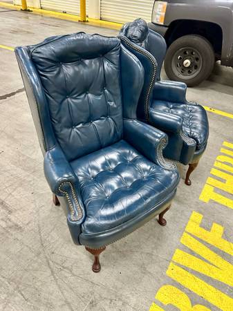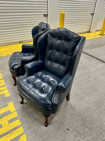 Pair matching tufted leather wingback chairs - furniture - by owner...