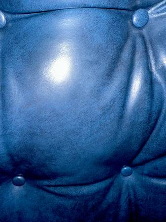 Here we have a matching pair of tufted top grain leather wingback chairs in blue (with black burnish) Made by Classic Leather of NC USA. Classic produced custom items for retailers including JL...