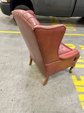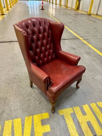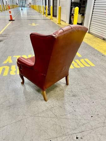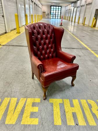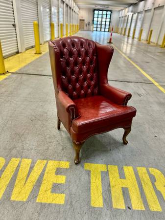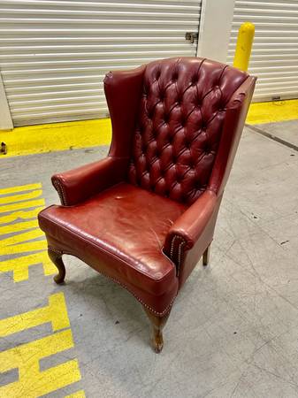 Tufted leather wingback chair VG cond vintage USA made - furniture -...