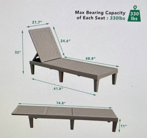 Tozey Light Mocha Resin Outdoor Chaise Lounge Set of 2 Waterproof PE Quick Assembly Chairs with Adjustable BackBrand new still in box.