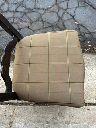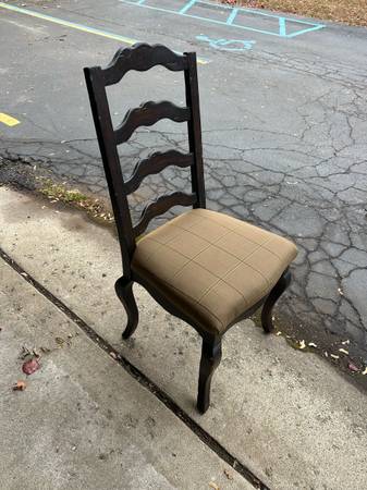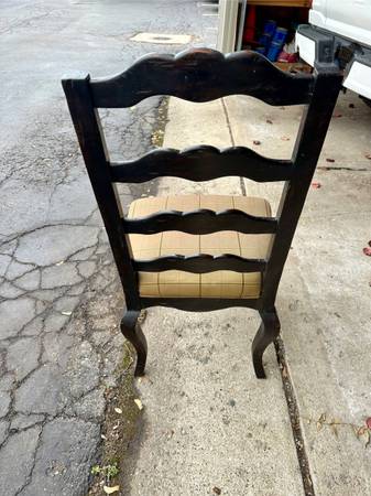4- ladder back dining room chairs by designer Fremarc. Paid $700.00 each. Some chairs have small nicks, easily fixed with furniture pen. Seat is 19” x 20”. Height of chair measured from ground to top of back is 43.5” tall. $50.00 each. Will not separate. Email John with any questions.