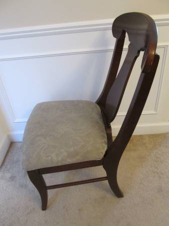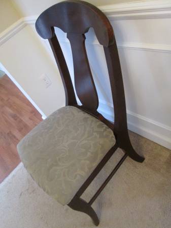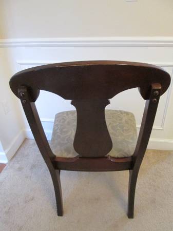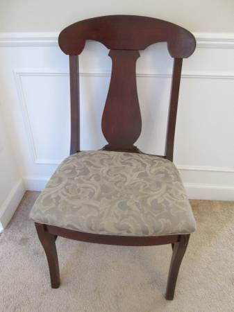 Comfortable chair. Solid wood frame. Great for guest room, family room, living room, bedroom. 17" seat to floor. 39" seat back to floor. Very sturdy. Belong to a non-smoking no pet home.