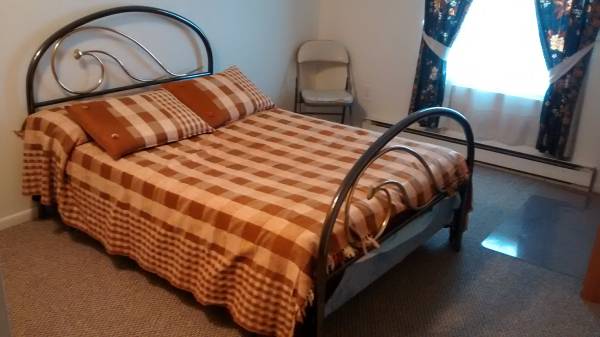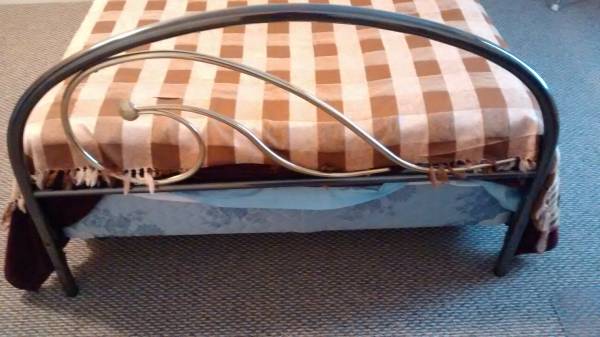 Black Metal & Brass Accent headboard and footboard, bed frame, and mattress supports included. * Pet-free and Smoke-free household. * Currently being used in the spare bedroom for guest usage....