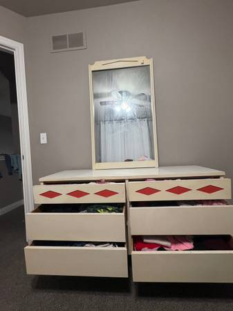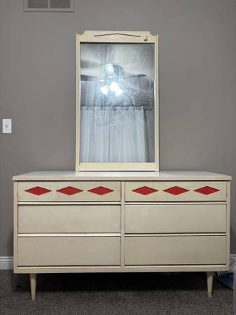 Add some retro charm to your space with this beautiful mid-century dresser featuring 6 spacious drawers and an attached mirror.