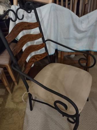 Set of 4 metal and oak sturdy captain chairs in very good condition. The price for the chairs is $95.00. No Delivery. Thank you.