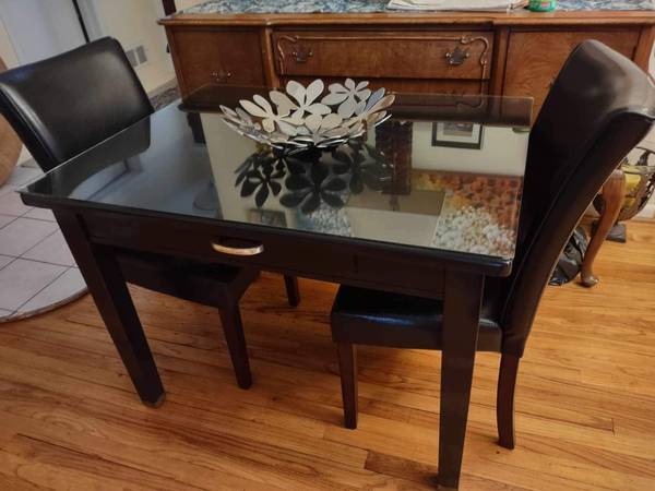 Solid wood glass top kitchenette or desk in good condition. It is 42x32 and 31" tall. The price for the kitchenette/desk is $75.00. No delivery. Thank you