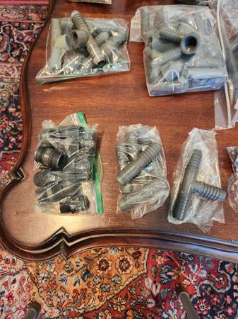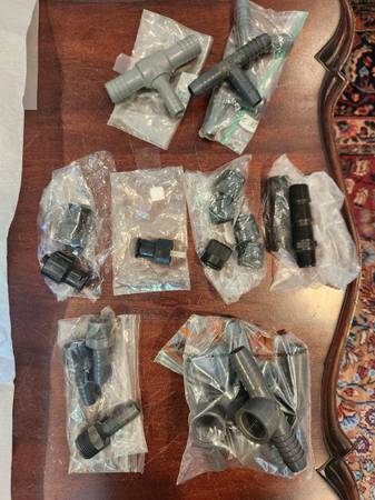 This system has 35 items with different quantities. More than 500. If you want to buy whole system I can send you list of items. If you looking for just some item let me know and I will give you answer and price, not enough place to list of items. There are stainless steel Hose Clamps of different sizes, 203 of them., different Barb x Barb x Barb trees, Adapters, Risers, Nipples, Nozzles and much much more.