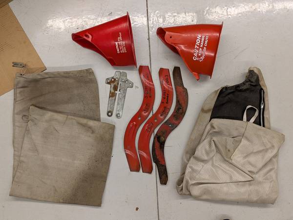 -2 used grass catcher bags, one has elastic opening , the other has a drawstring. Good shape, not worn $20 each