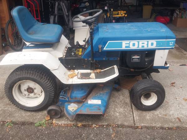Early 1980's ford lawn tractor. Runs if you jump it but will not hold charge. Needs work. Project? Right side tires leak.