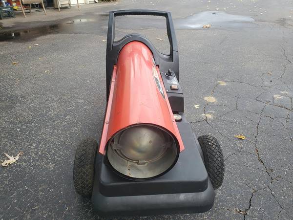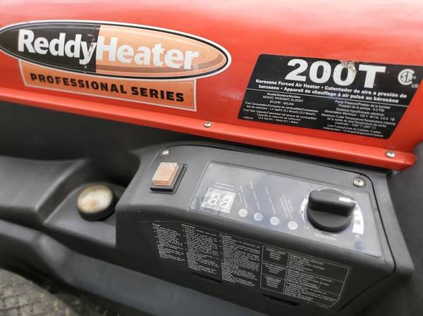 Reddy Heater 200T torpedo heater. 200,000 BTU, digital control with diagnostics, hot surface igniter, pneumatic tires, runs on kerosene, diesel or jet fuel, 13.5 gallon fuel tank, will run continuous for 9.5 hrs, tank flush and fresh diesel, starts and runs as it should.