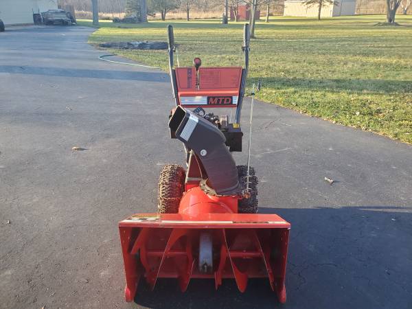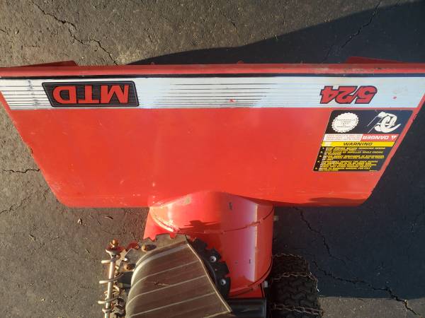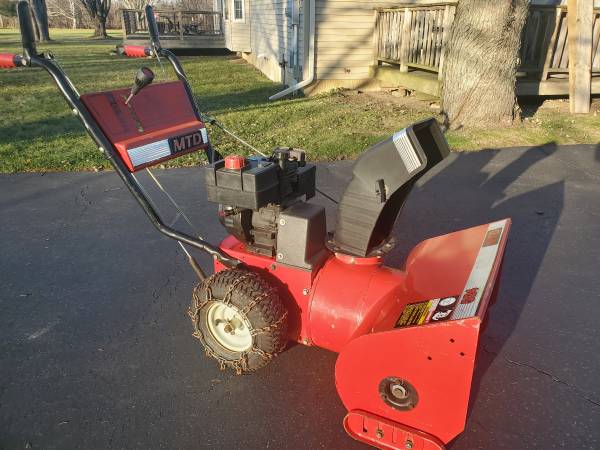 MTD 2 Stage 24" Snow Blower. 5hp Tecumseh engine, 24" path, 5 forward /1 reverse, chains, runs excellent, fresh oil, ready for snow. Made in USA.