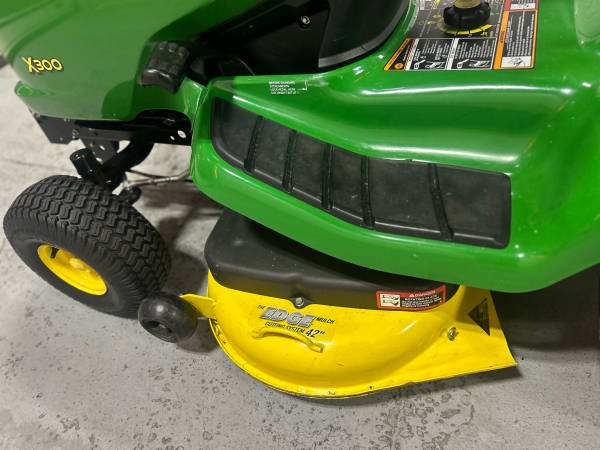 Very well cared for John Deere X300 Professional Lawn Mower with Hydrostatic Transmission, so no shifting. 42” Mulching deck - 730 Hours. This isn’t an inexpensive Lowe’s or Home Depot model. Runs perfect and mows excellent