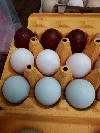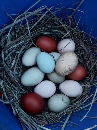 I have two young purebred Blue Ameraucana roosters, born in June. They are homozygous blue egg gene carriers so they will pass a blue egg gene on to every chick. (dad is dna tested and they are out of a blue egg laying Ameraucana hen. They are from Chicken Scratch Poultry in Illinois and Deer Run Farm in Maryland bloodlines. They will be an asset to your Ameraucana breeding coop or any breeding project where you need blue egg genetics. They are also learning the skills needed to free range and protect their flock. Pictures of the blue rooster are their dad, picture of the black hen is their mom and her blue eggs. $20/each for the 3 month old boys. Meet at the White Lake Tractor Supply. I can get current pictures if needed.