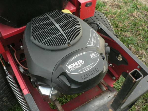 26hp Kohler engine, single lever steer, 48" deck, grass leaf bagger less bags available, belt drive blower