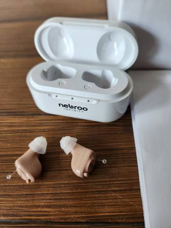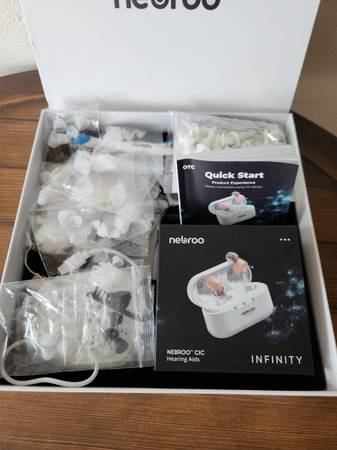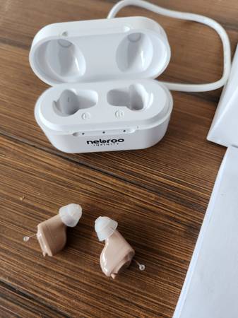 Hearing aids set in the box. Condition is new. Tried on, but not used. Sized for medium to large Ear canal ( man?). Complete with charger and care set. Paid. $99. I am a small woman with very small...