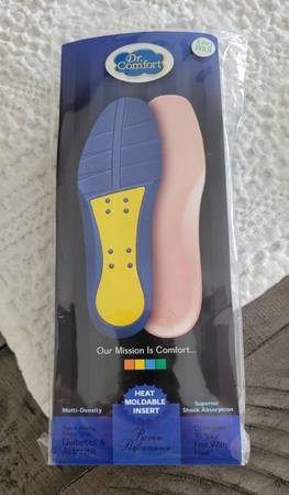 3 pr of Dr Comfort Heat Moldable Diabetes and Arthritis Inserts. 2 are size W8.5, and 1 is size W8 Multi Density Superior Shock Absorption All 3 brand new in unopened packages $6 EACH