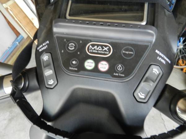 LCD display tracks your distance, speed, calories, level, time, heart rate, and more