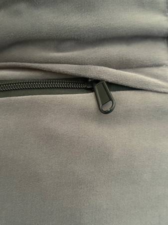 no holes or rips in the cover itself. Very easy to take on and off with the help of a heavy duty zipper that never gets stuck or breaks.
