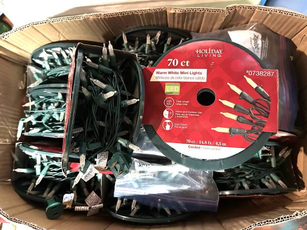 #2 Two GE Staybright LED Light strands, 34.5' long with 70ct Diamond Cut C9 warm white lights, 6" spacing from Lowe's spec's below. These two worked perfect on my gutter and can be used for a variety of indoor/outdoor purposes. the strands plug together or work alone, spare fuses and bulbs included. Bulb spacing is 6" for great coverage, no gaps. $10 per set or $15 for both, add $4 per set for gutter/clip or12 total if you buy both