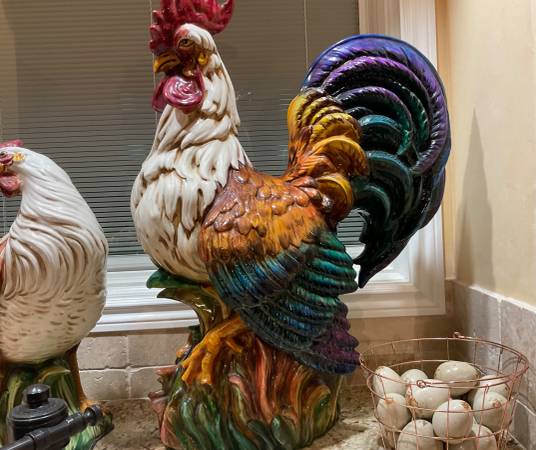 Wonderful Basket of eggs. The basket is copper and holds 15 beautiful artisan hand made ceramic eggs.