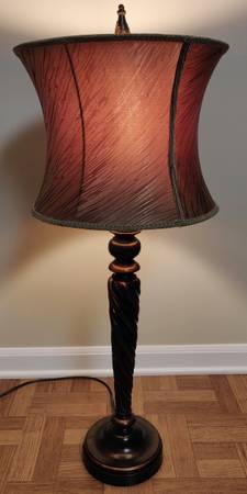 Large Twist Table Lamp Bronze/Copper Silk Shade Height 37'', Width 14'' Cash Only