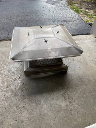 Stainless steel 14.5 x 14.5" chimney cap, fits a masonry chimney flue.