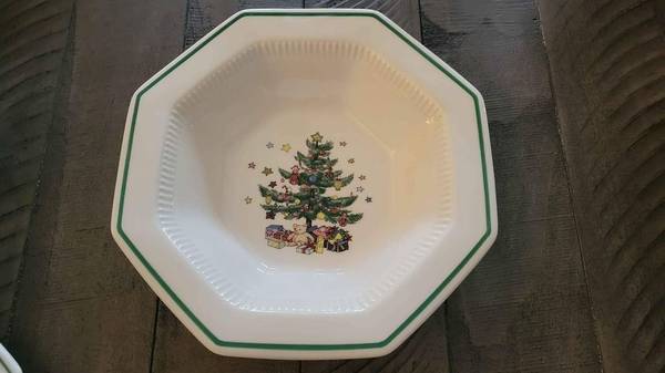 Beautiful Nikko Christmas dishes for a large family gathering.