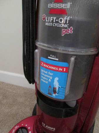 Bissell Lift Off multi cyclonic pet vacuum. 2 machine in 1. 15"wide path with duel edge cleaning for quick results. Attachment included. Very clean.