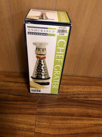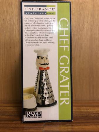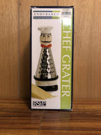 Brand New Kitchen Grater by Endurance Shape of Chef As seen here: https://www.amazon.ca/RSVP-CHEF-8-Endurance-Grater-Kitchen/dp/B000MVI8Q0 Brand new in sealed plastic in original box Asking $10.00...