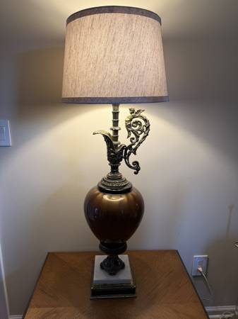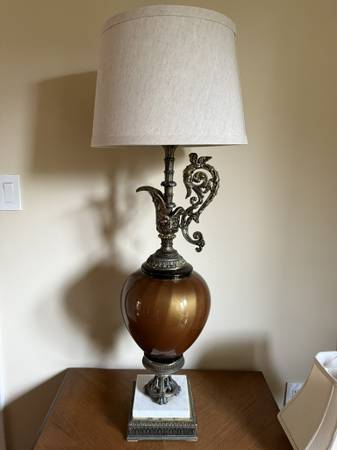 Beautiful Table Lamp is great condition. Marble, Glass, Metal Height 40.5" Width 15" Cash Only You can call or text
