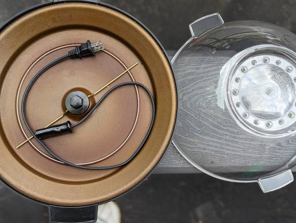 Stir Crazy popcorn popper is a hot oil popcorn maker with a motorized stirring rod that automatically stirs kernels as they pop, preventing burning and leading to evenly popped, flavorful popcorn. It features a vented lid that can also be used as a serving bowl after popping. These poppers are known for being easy to use and easy clean up. Can include a plastic lid that fits but not the original one.