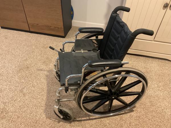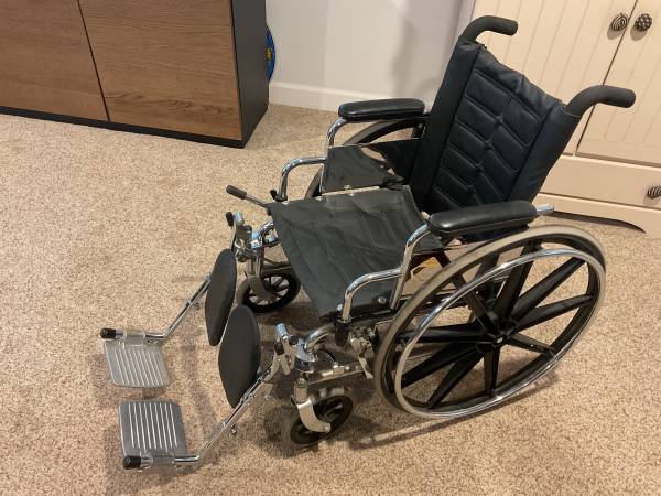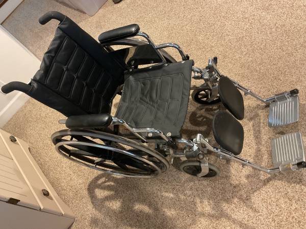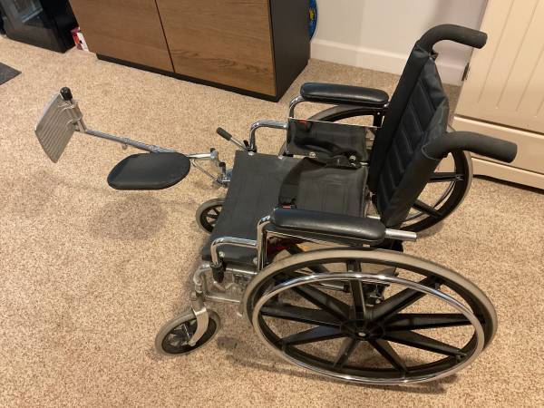 Nice wheelchair with adjustable and removable footrests. Wheelchair is foldable to load in trunk. Person can be buckled up. Clean and functional. $150.- or best offer Questions, please call Steve