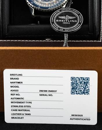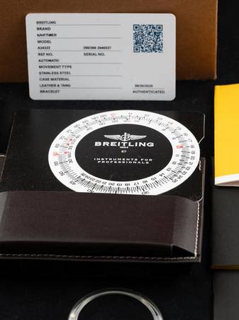 This comes with Breilting inner and outer boxes, travel case, COSC certificate, booklets, limited edition certificate, slide rule instructions, hang tag, and bezel protector. This is a super limited run of 300 units with a grey and black dial with a very slim chance you will find one on the market again. It's in very fine condition and you'll be proud to wear this legacy to pilot's watches. This edition is becoming more and more scarce, and represents a good investment in the future.