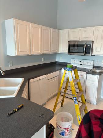 Used kitchen cabinets by merillat. Cabinets are in very good shape, color is white. Base cabinets are all 34 1/2 inches tall, there is a 33 inch sink base, 18 inch four drawer, a 12 inch, 18 inch, 24 inch, and 36 inch, all with pull out shelves. Wall cabinets are all 30 inches tall. There is a 33 inch, another 33 inch, 36 inch, 18 inch, 12 inch, a 36“ x 12“ refrigerator cabinet, a 30“ x 15“ stove cabinet, a 27 inch blind corner cabinet, and a 24“ x 84 inch pantry. There are a few miscellaneous fillers and toe kicks.
