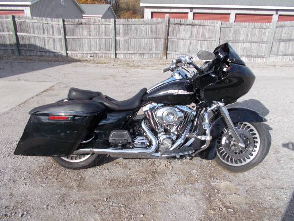 Good Title 2009 Harley Davidson FLTR Roadglide 96in, 6spd. Only 31,000 miles!!!! Stretched Bags and Rear Fender. Custom Mufflers. Runs Extremely Strong. Bike has right side laydown damage. Needs front fender, inner/outer fairing, and right saddlebag is cracked.Simple cosmetic fixer. Only $4995. CASH FIRM.