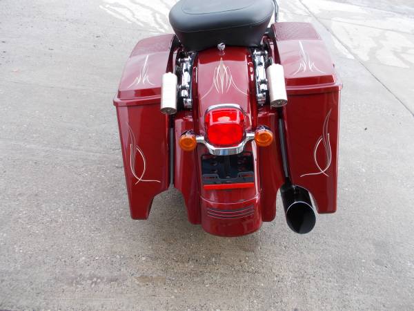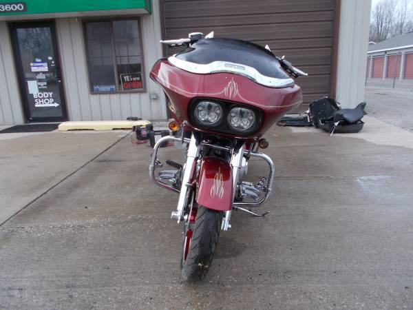 Good Title 2009 Harley Davidson Roadglide FLTR Built 103cu, with Diamond Cut Heads and Jugs!!! 2into1 Header, Chaindrive conversion. 6spd. Custom Bars, Wheels, Remote Reservoir Shocks, Stretched Bags with Speakers, Etc. Etc. Etc. 51,000 miles. Bike runs absolutely amazing and sounds wicked. Bike has laydown rash/damge to one saddlebag and inner fairing is broken. Simple fix. Good Clean Title Too!!!! Only $5995. CASH FIRM.