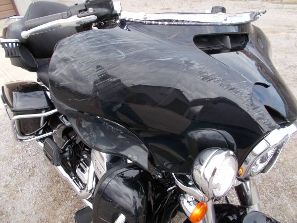 Good Title 2019 Harley Davidson Ultra Limited FLHTK 114cu. 6spd. Only 35,000 miles. Custom Mufflers and Bars. Factory loaded up limited with touchscreen stereo, chrome wheels, quick attach tourpack, etc. etc. Runs very strong and rides. Bike has left side damage, needs inner/outer fairing shell, missing left saddlebag and minor misc. Very nice fixer.