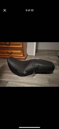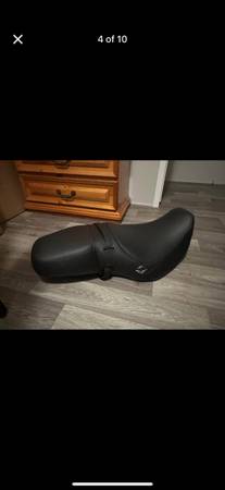 Motorcycle seat, and what looks to be a “silencer” maybe- these parts came from a neighbor but we have no storage for them anymore.