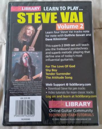 Guitar Instructional DVDS Lick Library **Region 2** - Steve Vai Vols.1 and 2 Roadrock Music International Ltd