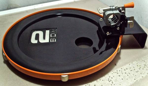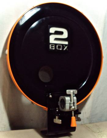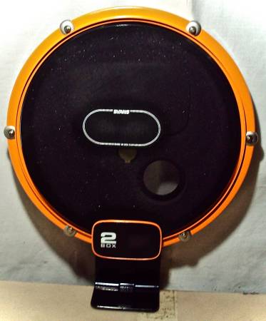 2Box Drumit 5 14" single zone bass kick pad. Only compatible with 2Box modules. Illuminated 2Box logo powered by the 1/4" trigger jack that runs to the module. Minor scuffing on pad and head wear. Lugs fit with Hendricks non-slip nylon washers. Last image shows the illuminated 2Box logo.