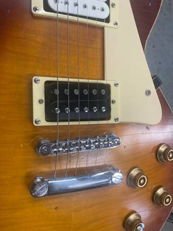This is a Chinese version of Jimmy Pages #1 Les Paul the electronics have been updated pots caps and pickups, Duncan distortion and a tone zone and the lead pickup is split by the tone knob it plays nice with low action the knobs go to 11 by the way it comes with a case.