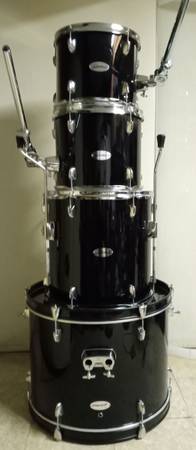All sound good, and in very good condition. No rust or pitting on hardware. Shells are almost flawless. Heads are about 70 percent. 22×16 Bass drum 16×16 Floor tom 13×11 Rack tom 12×10 Rack tom....
