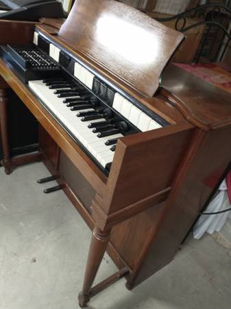 Hammond Chord Organ is in good working condition. It is operating with one amplifier speaker. One amplifier speaker is missing... easily acquired from Amazon. All of the keys, foot pedals are in working order. The wood case is in beautiful condition. It is Model # S6, Serial # 37751, 117 volts, 150 watts.