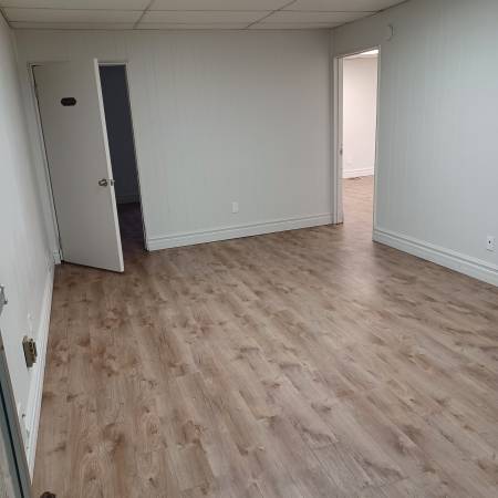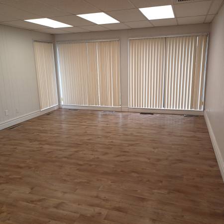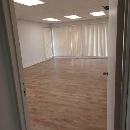 Floor to ceiling windows with vertical blinds. 3 rooms total and the corner office is H U G E!!
