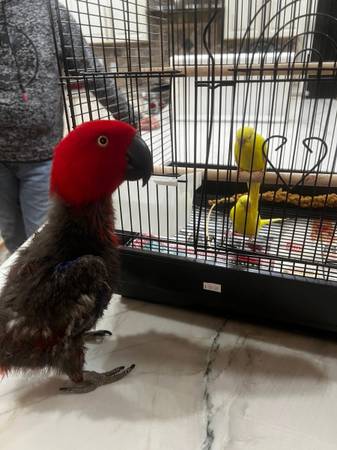 Two really nice budgies. Both yellow. Somewhat tamed. With small cage. Only 30. Moving so rehoming