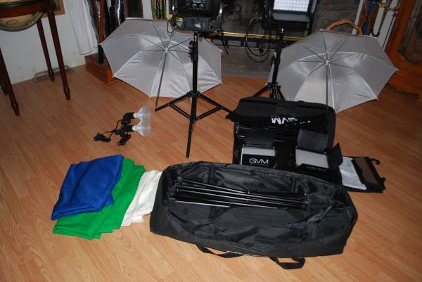 These are a year and a half old and $800.00 total new from B&H photo. $200.00 for everything. Please no trades. Great for blogging and small video and or still photography. There are battery holders, but no batteries, for field use. Two-four-eight-nine-one-six-three-six-nine-five. Text is more likely to get a response. Thank you. Feel free to ask any questions.